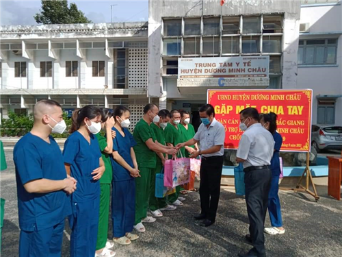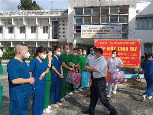 Bs CKI. Huỳnh Ngọc Bảnh – Giám đốc Trung tâm Y tế huyện, đã gửi những lời tri ân và cảm ơn chân thành đến Ủy ban nhân dân tỉnh Bắc Giang và đội ngũ cán bộ, y bác sĩ đã không quản ngại khó khăn, gian khổ lên đường hỗ trợ tỉnh Tây Ninh nói chung và huyện Dương Minh Châu nói riêng./.