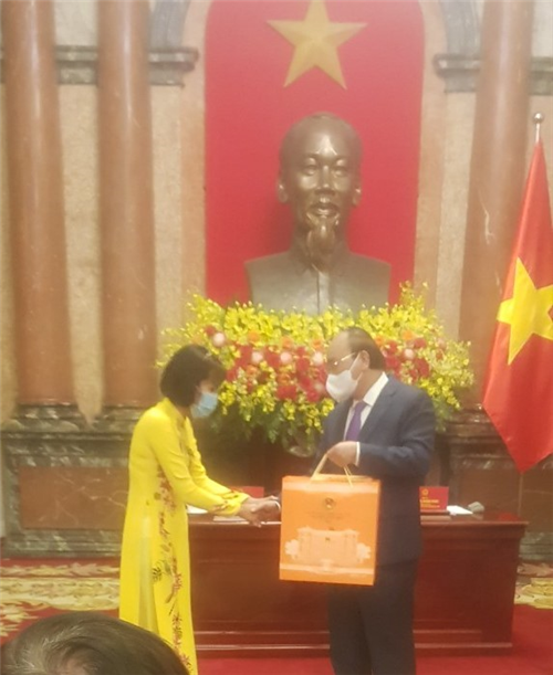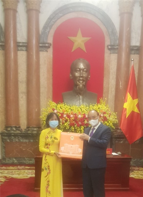 Chủ tịch nước Nguyễn Xuân Phúc tặng quà cho Bs Trần Thị Ngọc Bích