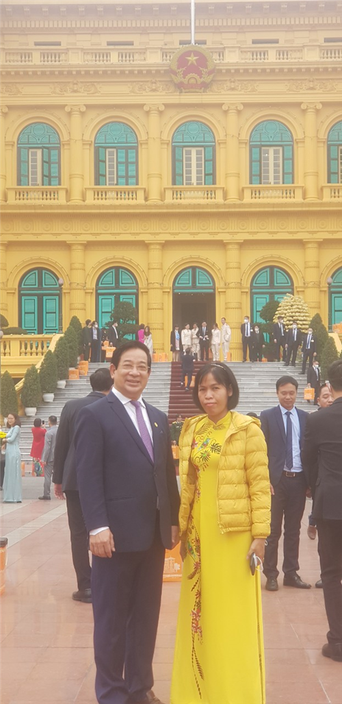 PGS.TS Lương Ngọc Khuê - Cục trưởng Cục quản lý Khám chữa bệnh và Bs Trần Thị Ngọc Bích tại Phủ Chủ tịch (Hà Nội)
